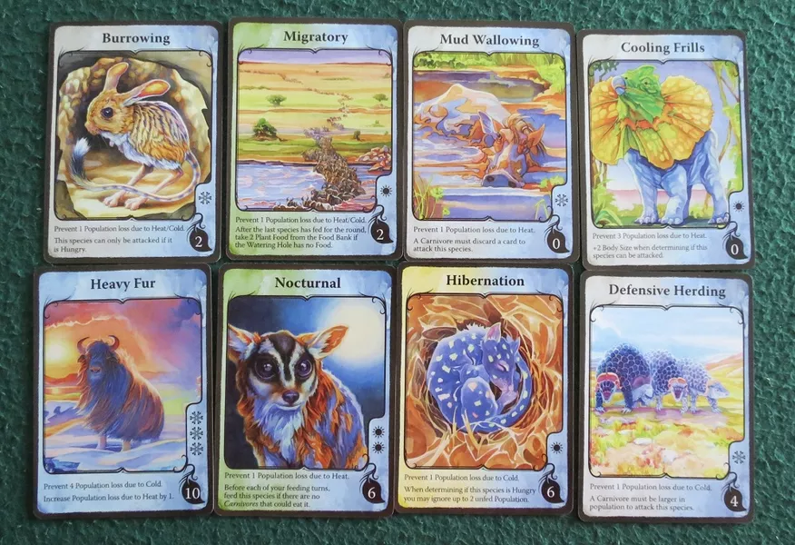 The new climate traits open up entirely fresh strategic avenues. Heavy Fur and Migratory shield your creatures from the cold, while Nocturnal and Burrowing offer refuge from a punishing desert sun. With each species now able to carry up to four traits instead of three, the already vast combination space expands dramatically - over 200,000 possible evolutions - and the interplay between climate protection, predator defence, and food competition gives every game a satisfying, multi-layered puzzle to solve.