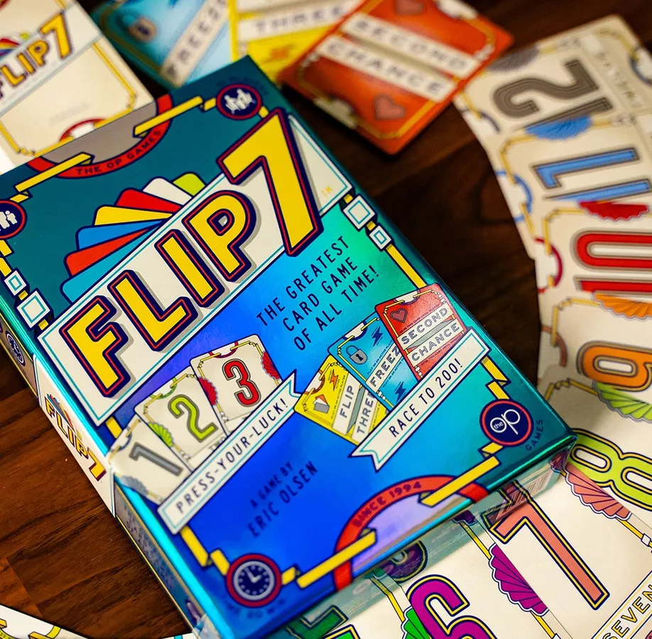 Sound easy? Think again! This isn’t just any deck of cards… In Flip 7 there’s only one 1 card, two 2’s, three 3’s, etc plus a bunch of special cards that can score you extra points, give you a second chance, or freeze you or your opponents in your tracks.