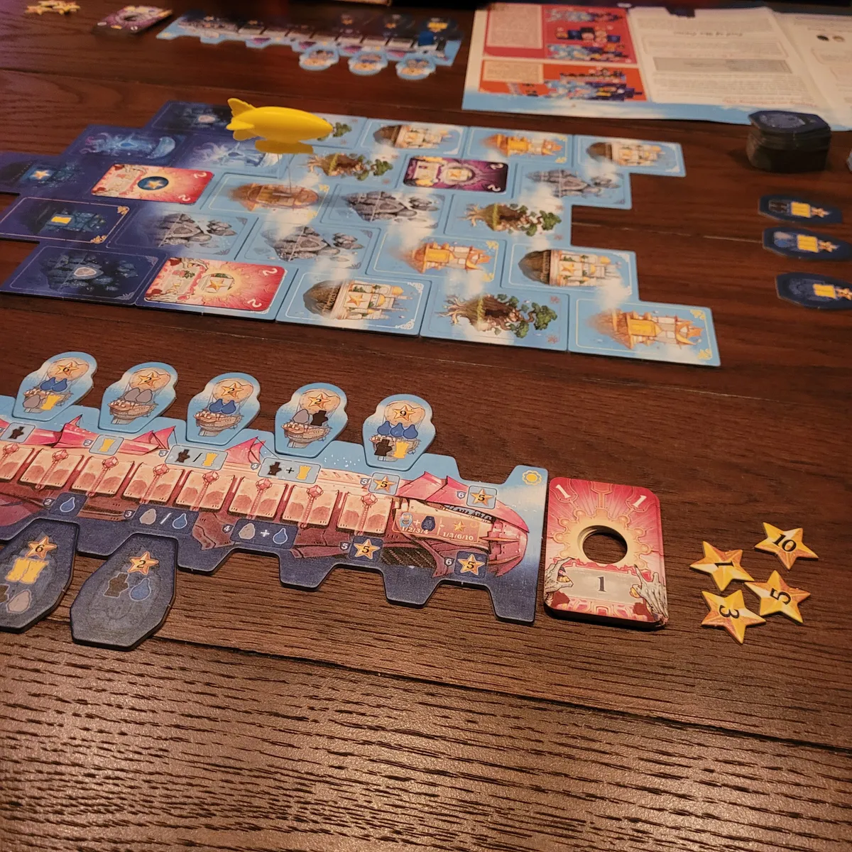 Strategy revolves around efficiency and timing. You must deliver specific combinations of resources to floating cities to earn gold stars and complete delivery contracts. Playing cards effectively not only grants you immediate resources but also provides powerful end-of-game bonuses depending on where they were placed when the board moved.