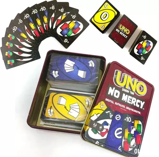 UNO No Mercy takes the familiar foundation of classic UNO and turns up the intensity with a more cutthroat, competitive twist. Players still race to be the first to get rid of all their cards by matching colors and numbers, but No Mercy introduces powerful new action cards and rule tweaks that significantly raise the stakes. The result is a game that feels instantly familiar, yet far less forgiving.